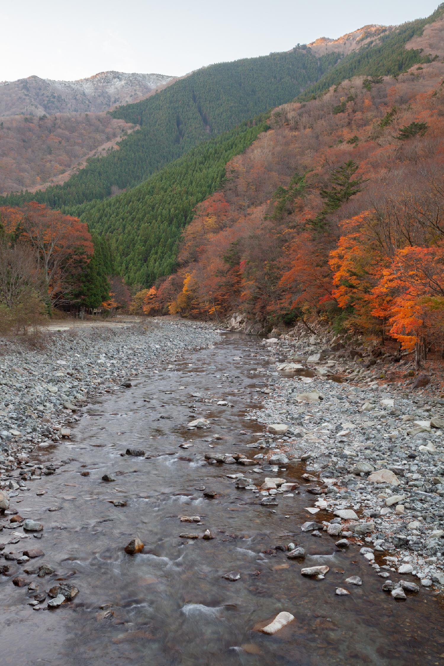 - 川辺から眺める紅葉と黄葉が織りなす秋の絶景(商品番号 c05-18666)